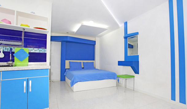 침대, 에어컨, TV, Wi-Fi, 식탁, 냉장고, 전자레인지, 커피포트, 핫플레이트, 주방집기일체